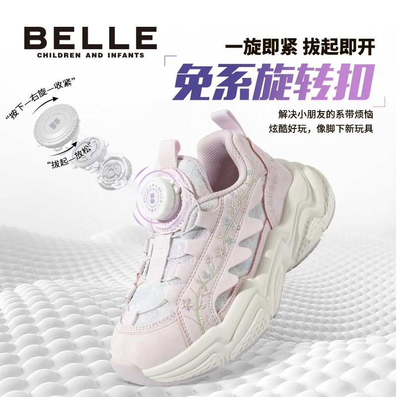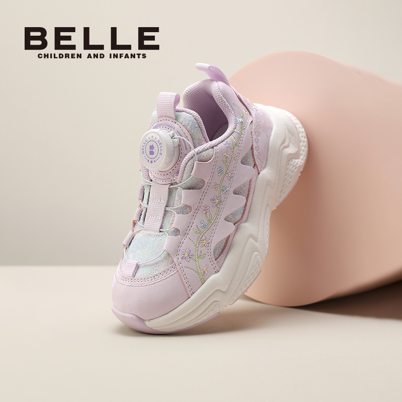 百丽童鞋小女孩老爹鞋2025秋冬新款宝宝鞋儿童旋转扣鞋女童运动鞋