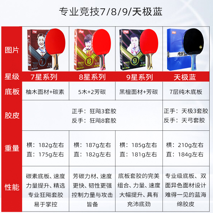 红双喜乒乓球拍9星专业级天极蓝正品单拍狂飙九星八星7星兵乓球拍