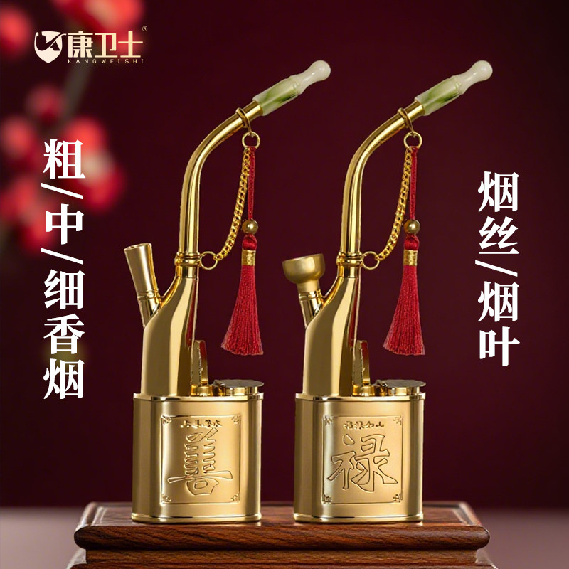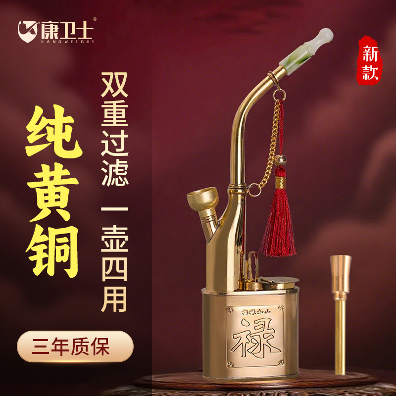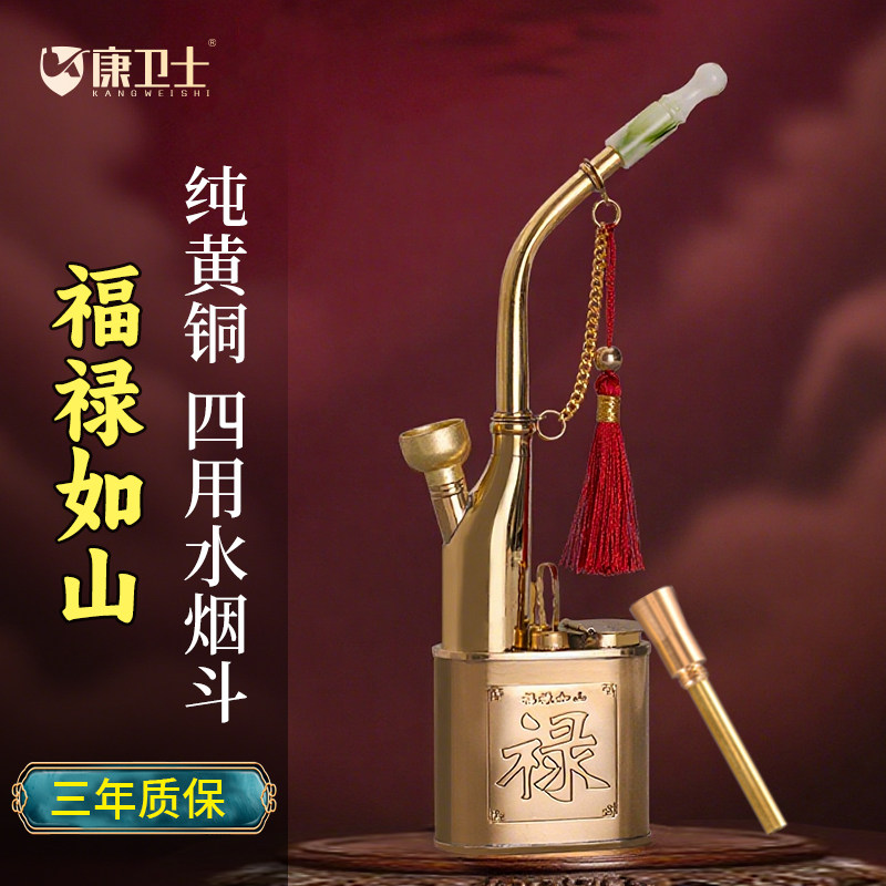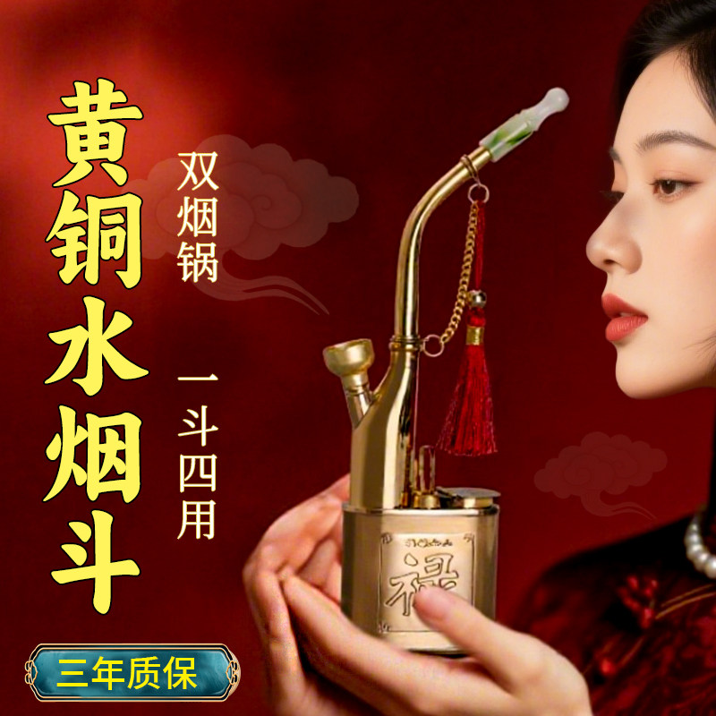 纯黄铜水烟壶全套老式水烟斗男士烟嘴烟筒锅烟丝烟草便携过滤器