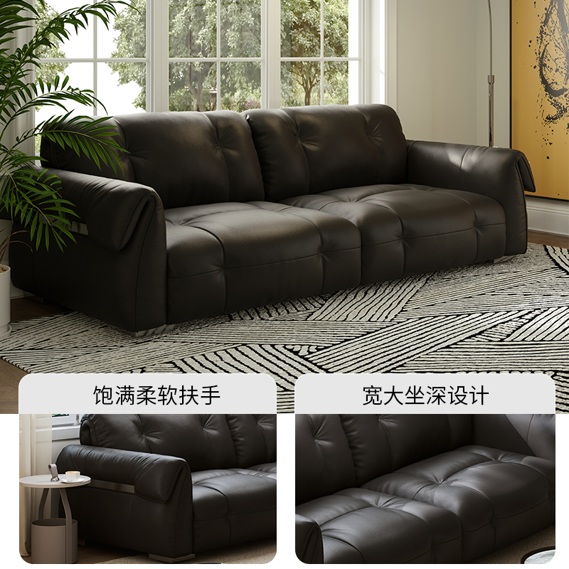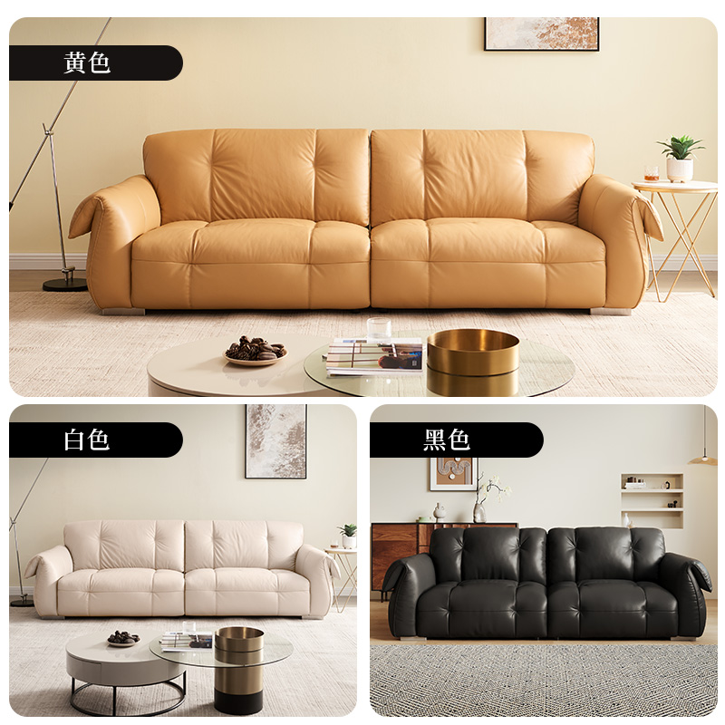 慕思集团旗下艾慕沙发真皮简约客厅小户型直排大坐深奶油风云朵