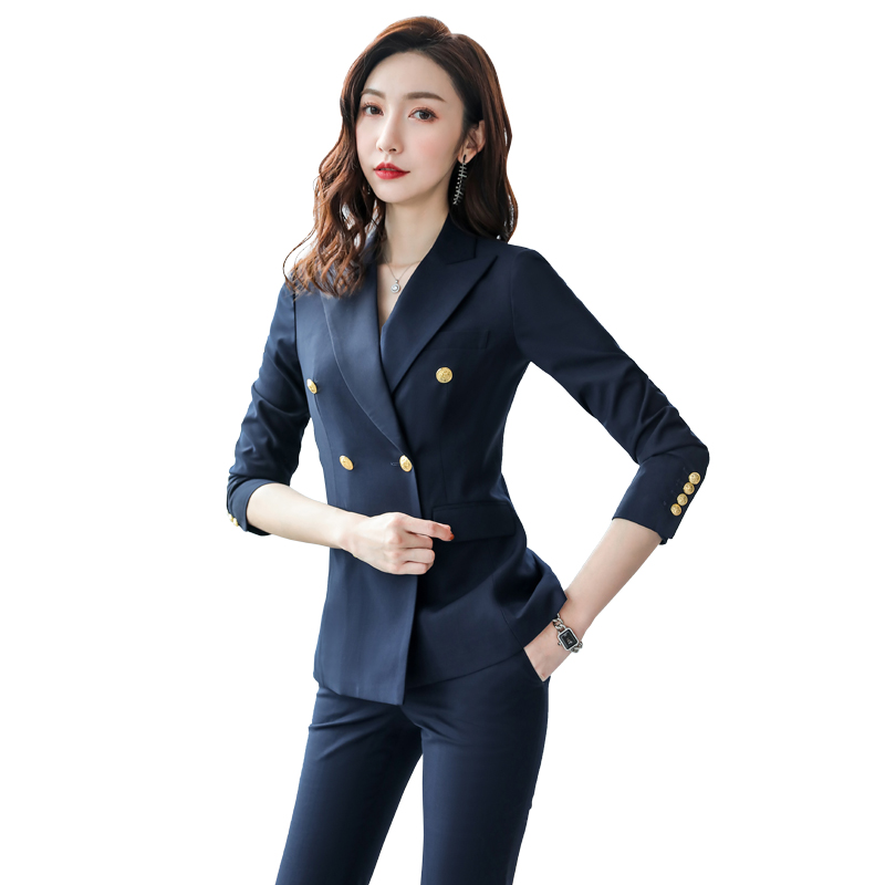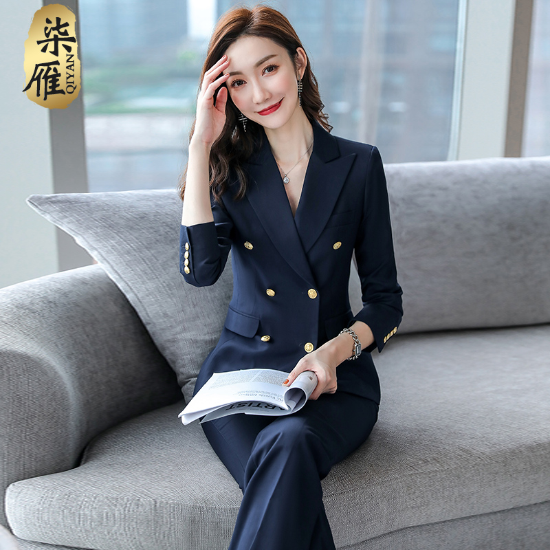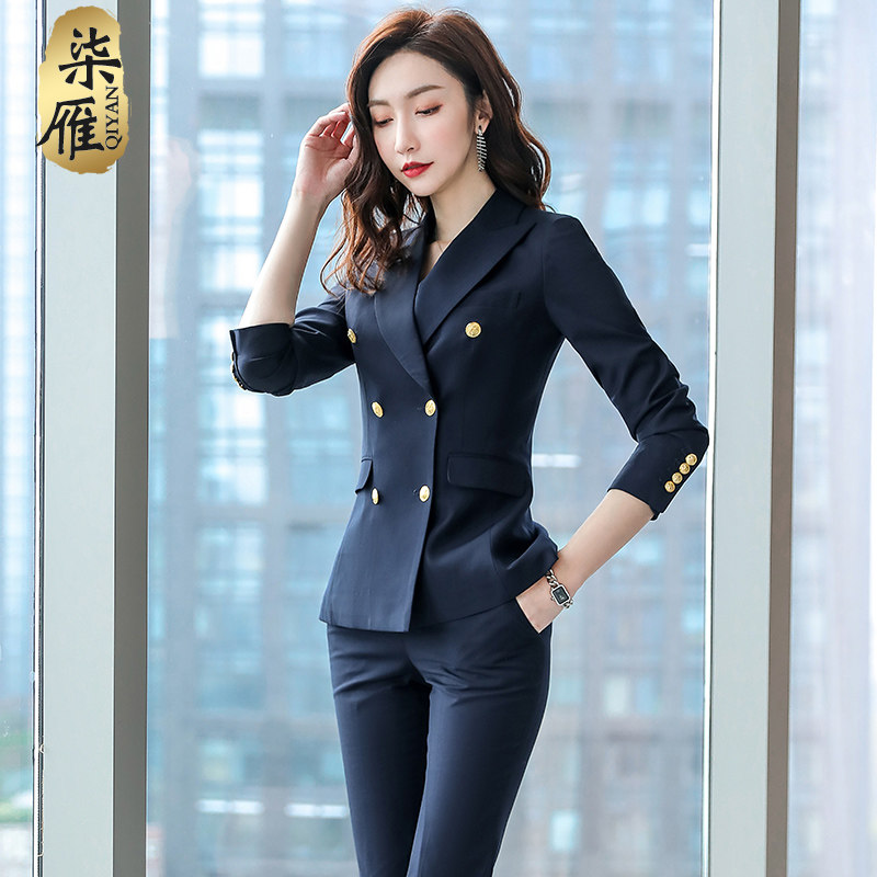 职业装女气质西装套装春夏酒店商务西服时尚双排扣正装上班工作服