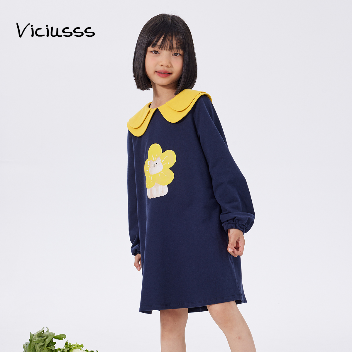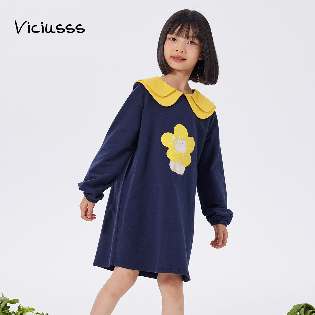 Viciusss丸社女童连衣裙2025新款中大童卫衣裙秋季娃娃领长袖裙子