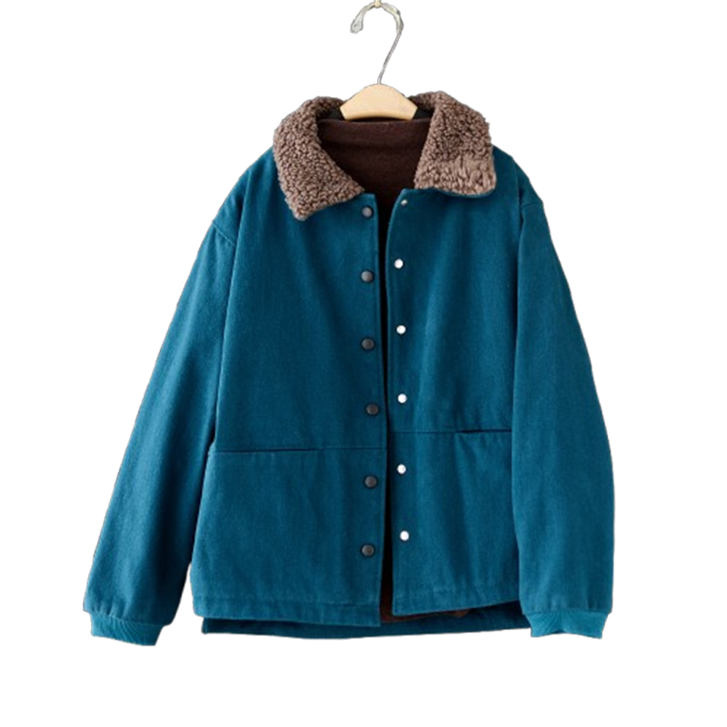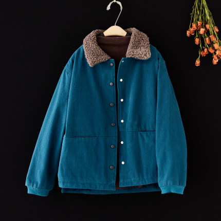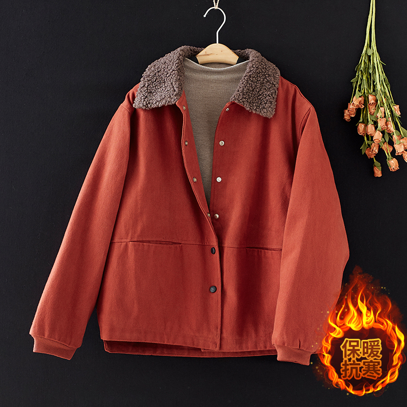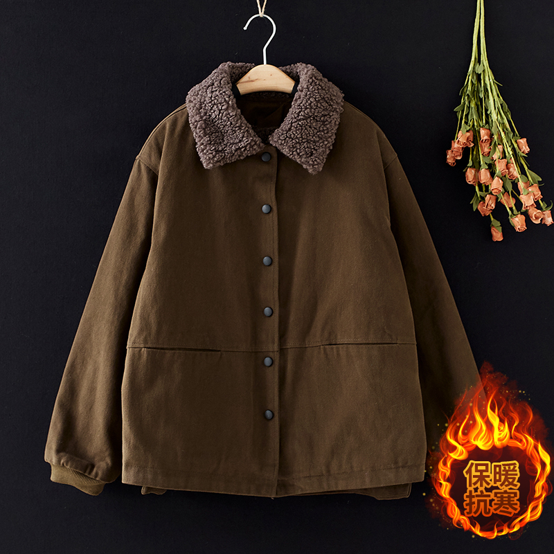 一线品牌商场撤柜纯色棉衣冬季新款加绒外套工装风宽松文艺短开衫