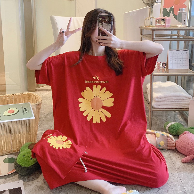 睡裙女夏季纯棉短袖网红大码200斤胖mm睡衣宽松孕妇连衣裙可外穿