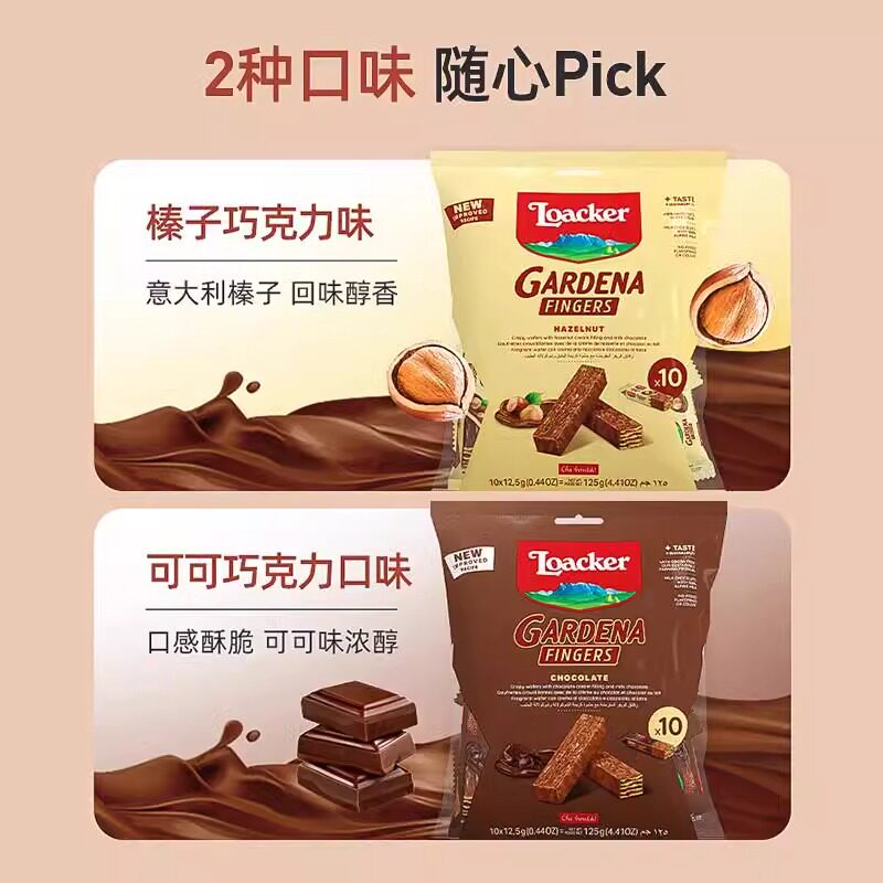 loacker莱家进口手指威化饼干巧克力涂层休闲办公夹心小零食组合