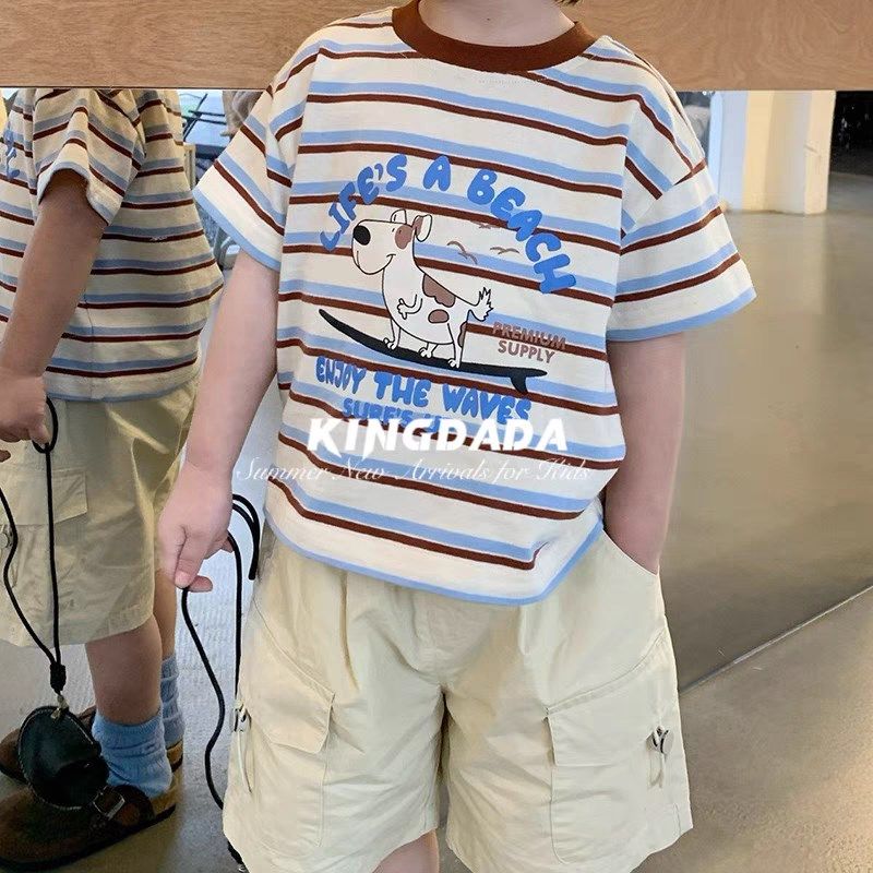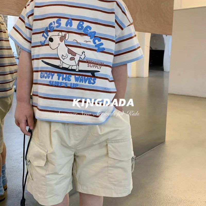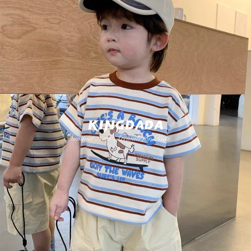 男童韩版短袖T恤2025夏新款洋气纯棉条纹半袖宝宝上衣潮男生夏装