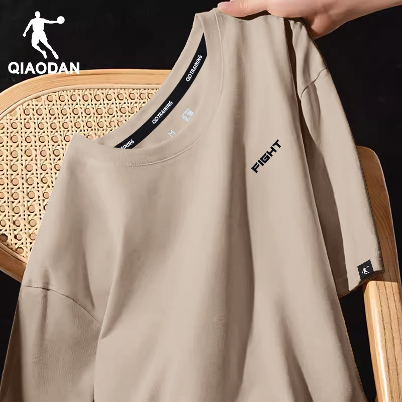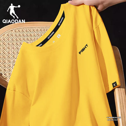 乔丹短袖T恤男夏季新款宽松百搭圆领休闲运动半袖青少年黄色体恤