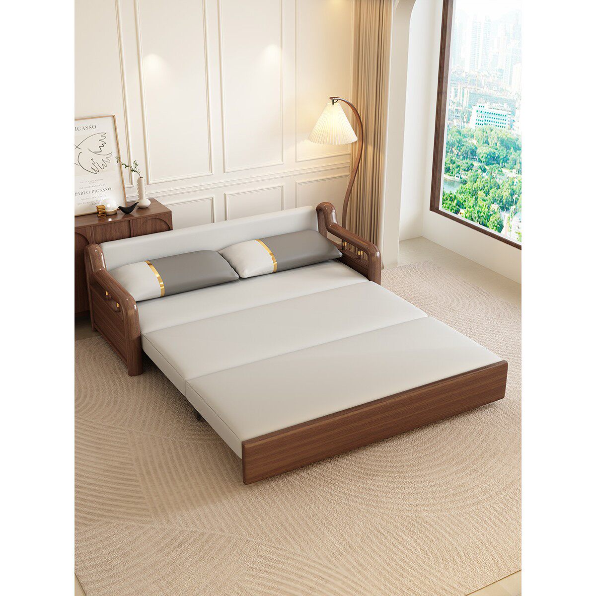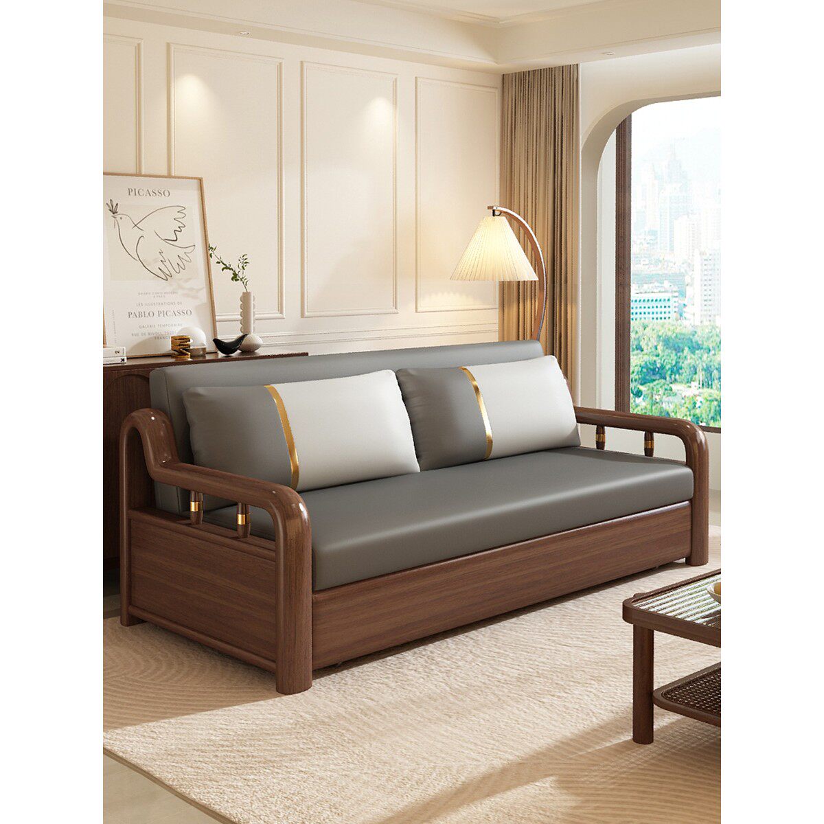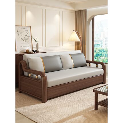 全友家居实木沙发床两用猫抓布多功能客厅小户型推拉单双人储物可