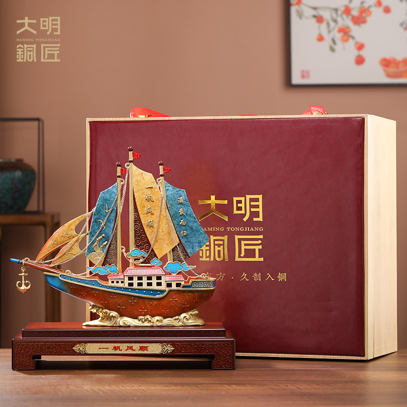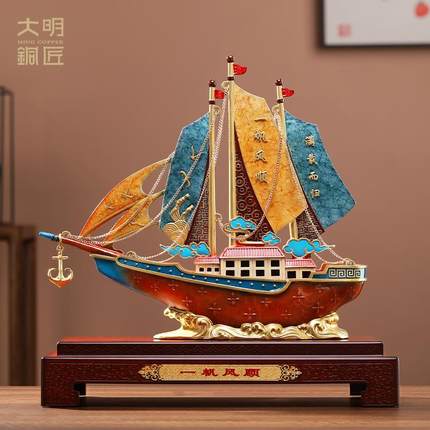 大明铜匠一帆风顺帆船摆件办公室装饰品公司开业乔迁高档商务礼物