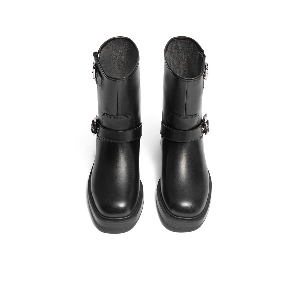 百丽休闲复古西部靴女冬季商场同款新款真皮机车靴短靴子3EL65DZ4