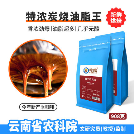 哈维意式特浓炭烧油脂王深度无酸现磨粉新鲜烘焙拼配咖啡豆454g*2