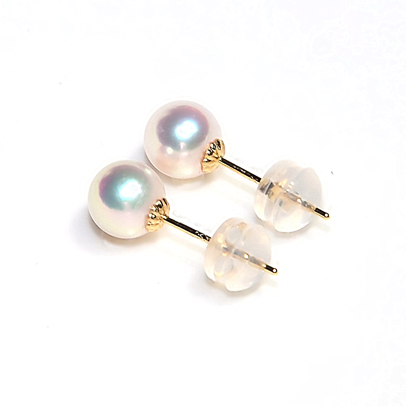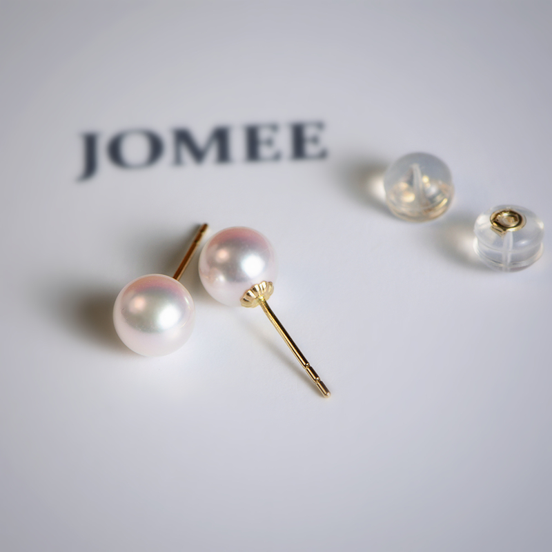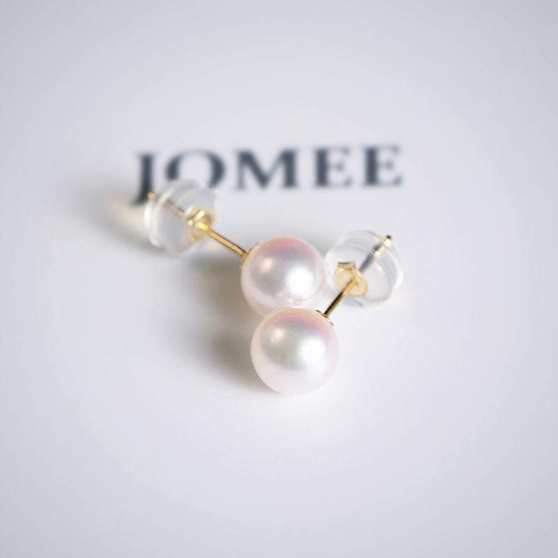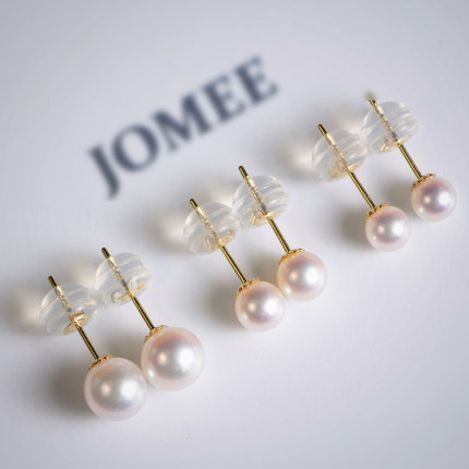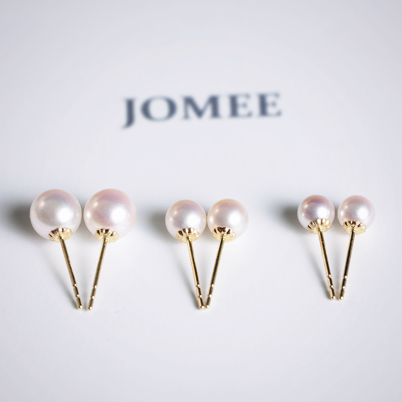 JOMEEの手作 镶正圆强光 18k金日本akoya天然海水小珍珠耳钉耳环