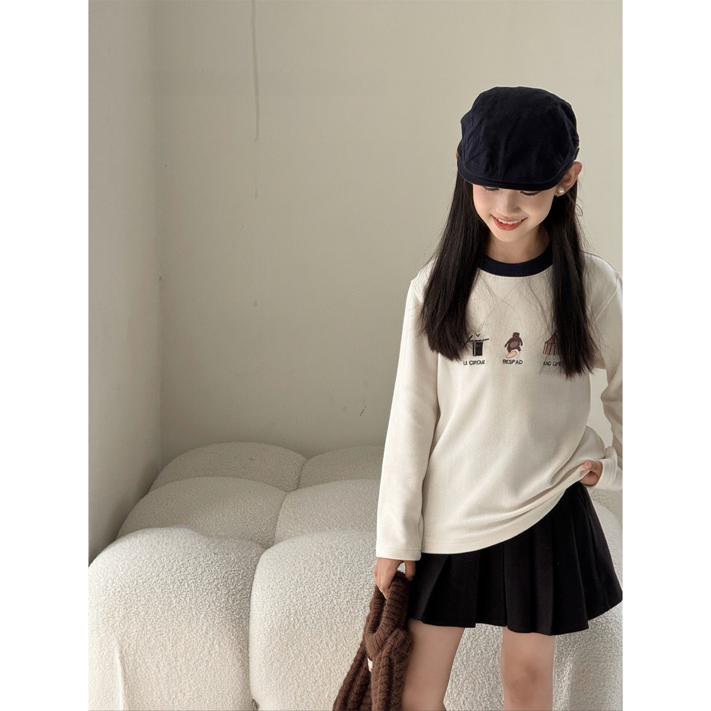 2025冬季新款磨毛加厚撞色刺绣百搭女童打底衫中大童打底上衣