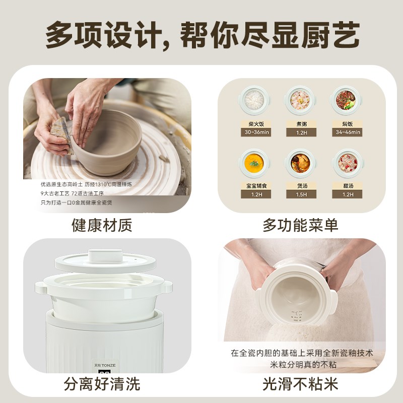 无重金属迷你电饭煲陶瓷内v胆天际婴儿蒸米饭煮粥电饭锅全自动陶