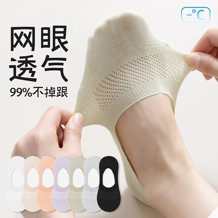船袜女夏薄款纯棉短袜子吸汗透气网眼夏天女浅口隐形袜防滑不掉跟