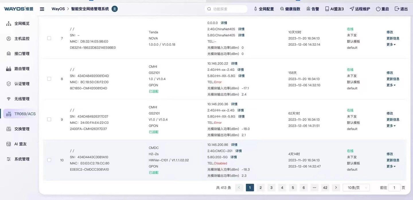 wayos维盟ITMS-S5光猫管理数据自动注册批量下发TR069光猫精灵ACS不限数量管理系统平台RMS全光组网OLT开局