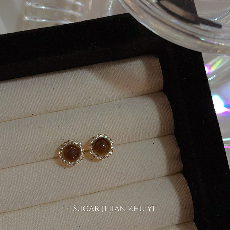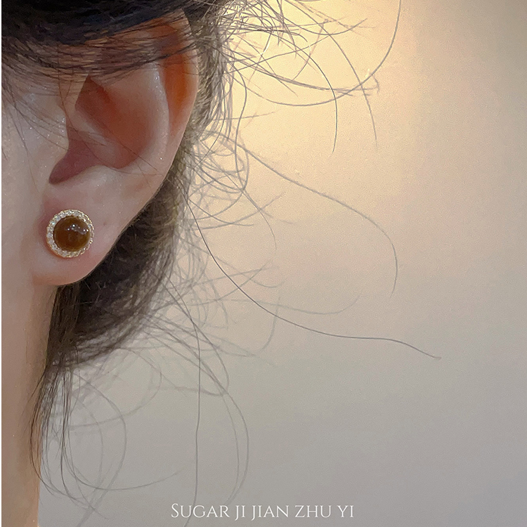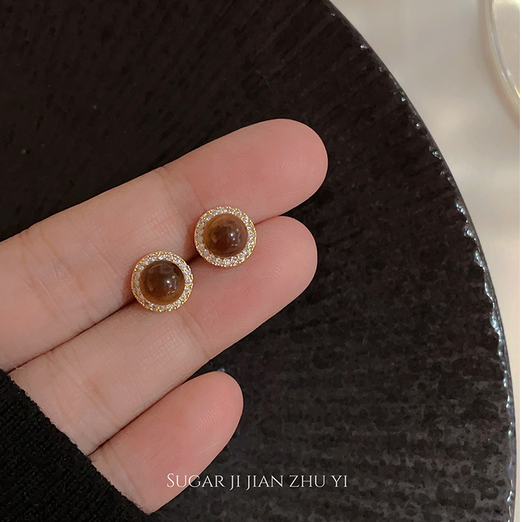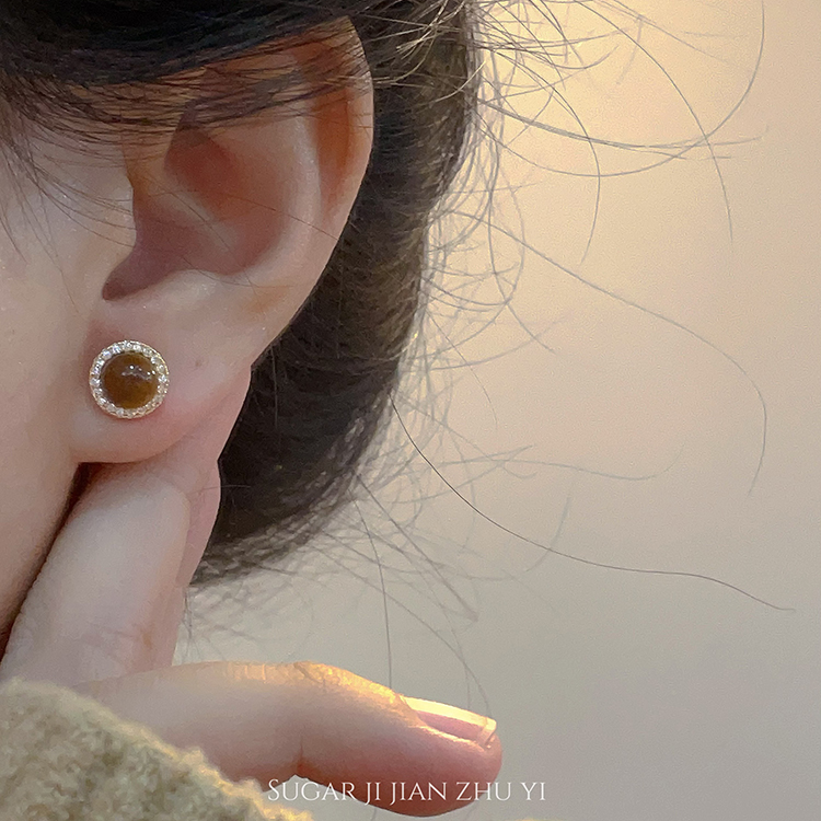 小巧精致焦糖色耳钉美拉德高级感复古2025年新款爆款耳环女港风