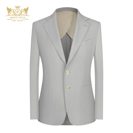本派高定半麻衬休闲西装男鸟眼纹结婚商务西服男士修身套装职业装