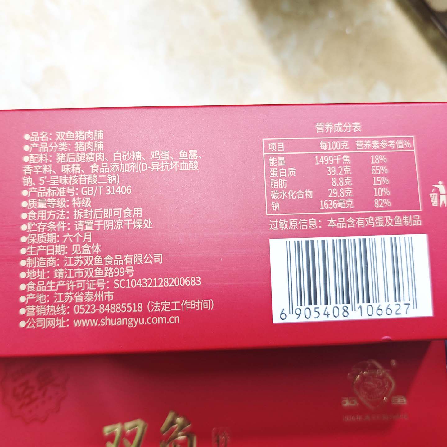 双鱼靖江猪肉脯原味礼盒720g