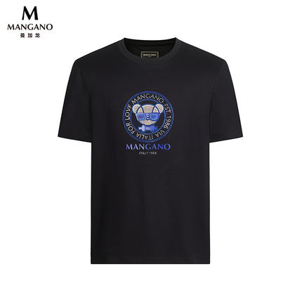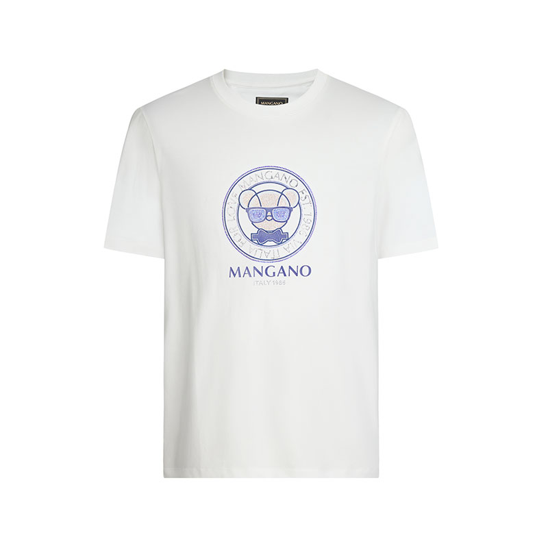 Mangano曼加龙 2025夏季小熊图案烫钻圆领休闲短袖男潮牌宽松T恤