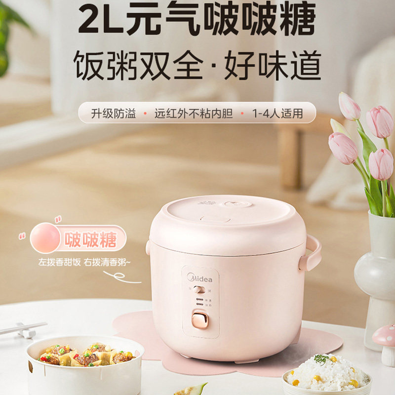 美的电饭煲2升家用1到2人迷你小型电饭锅3到4人新款蒸煮一锅三用
