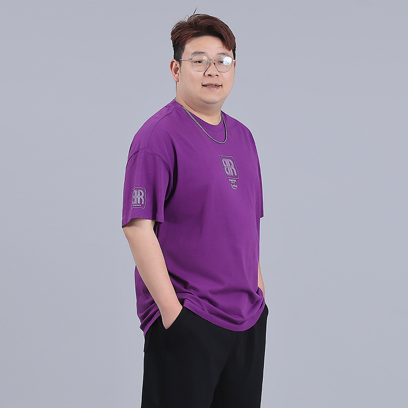 大码短袖T恤男2025夏季男士宽松上衣加肥加大码胖子短袖上衣男装
