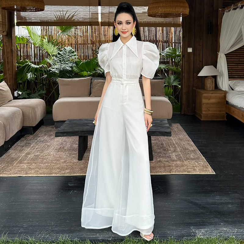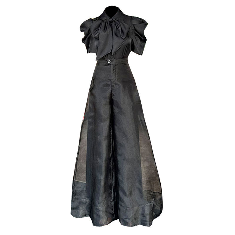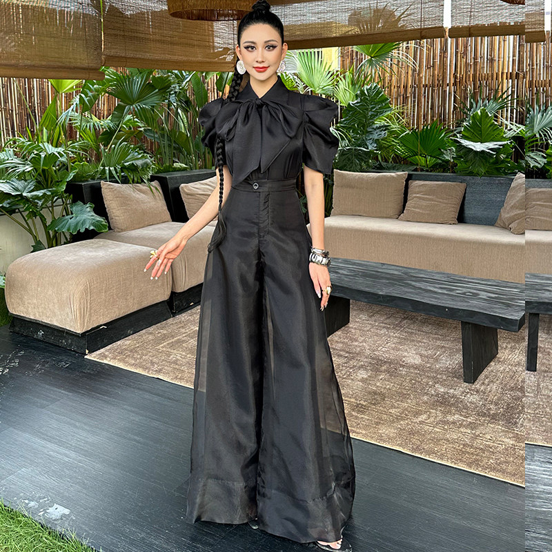 欧根纱蝴蝶结修身上衣高腰阔腿长裤巨好看的女士夏套装2025新款潮