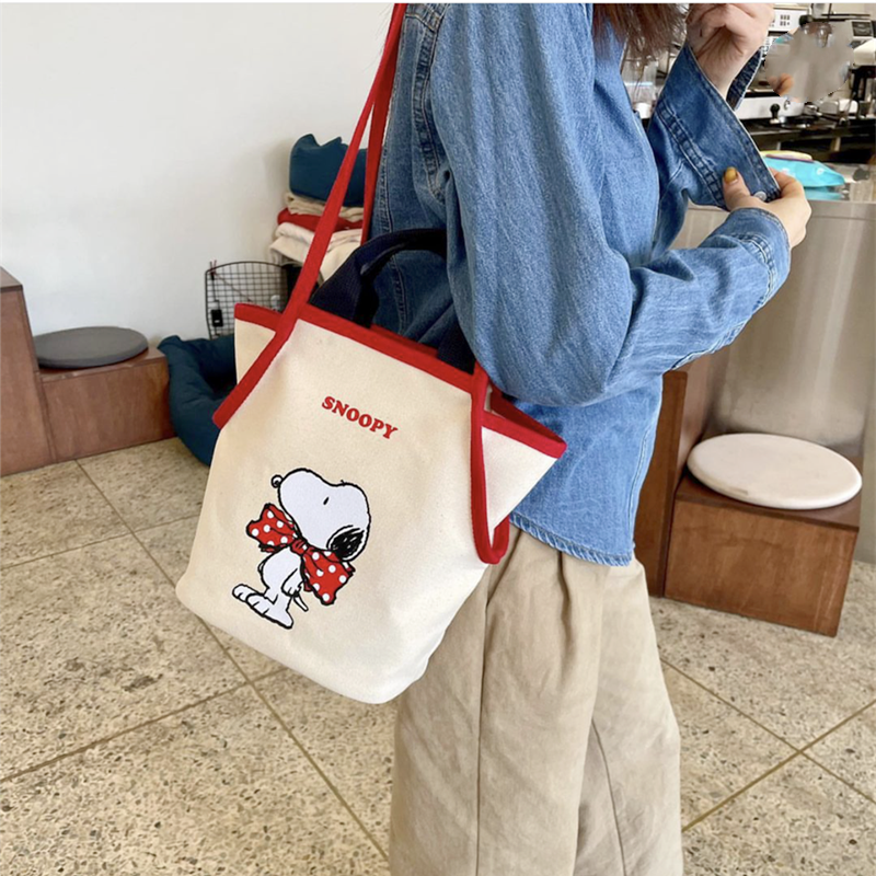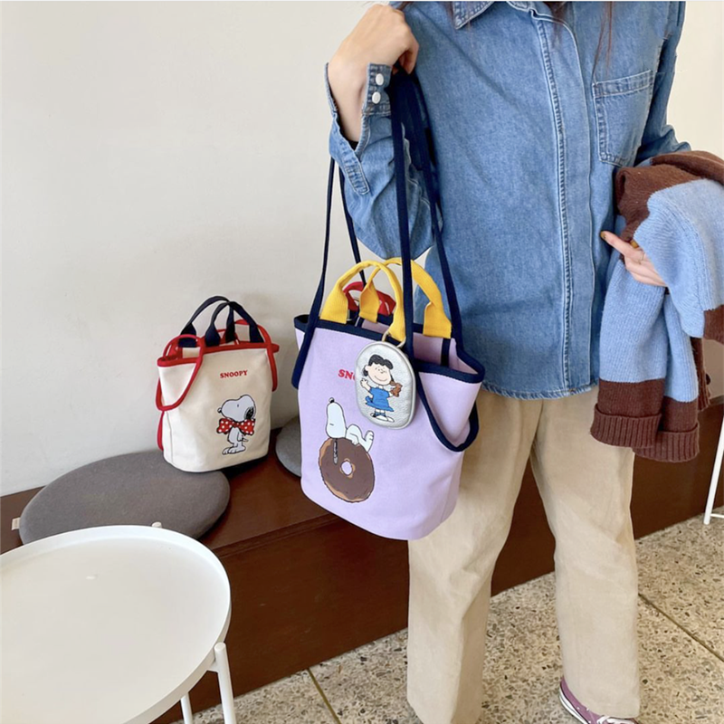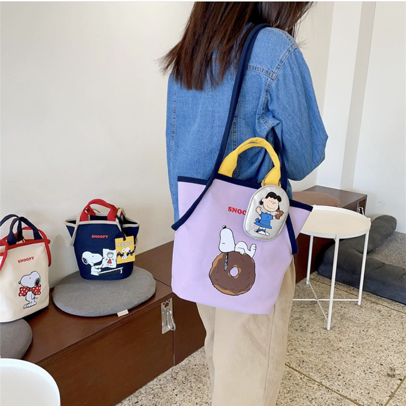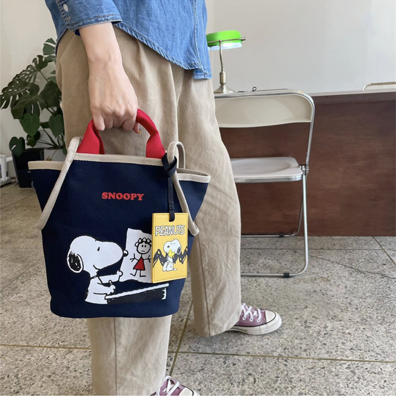 韩国东大门史努比卡通可爱帆布水桶包大容量休闲日常单肩斜挎包女