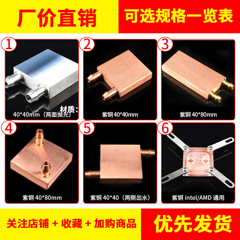 紫铜水冷头40*40 40*80 吸热液冷CPU半导体制冷片散热器 模具水冷