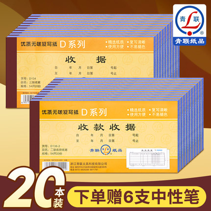 青联收据收款收据单栏多栏二联三联23联连两联收据本单簿收款本现金收剧单据锯无碳复写餐饮财会财务用品定制