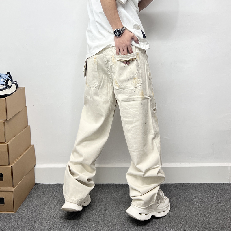 美式复古做旧破洞补丁牛仔裤男款潮牌痞帅大码宽松嘻哈阔腿长裤子