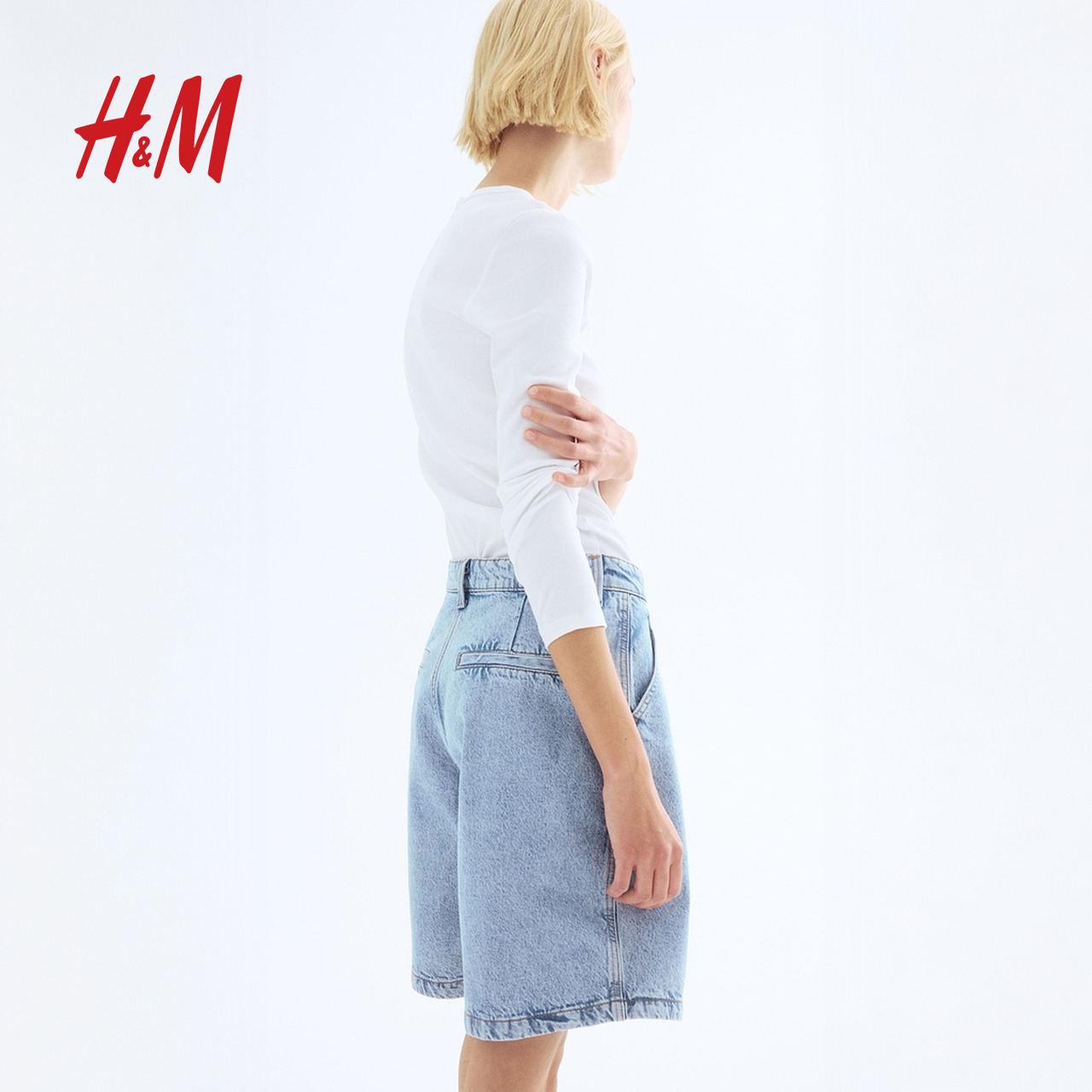 HM女装牛仔裤2025夏季新款时尚褶裥美式风五分牛仔裤短裤1259779