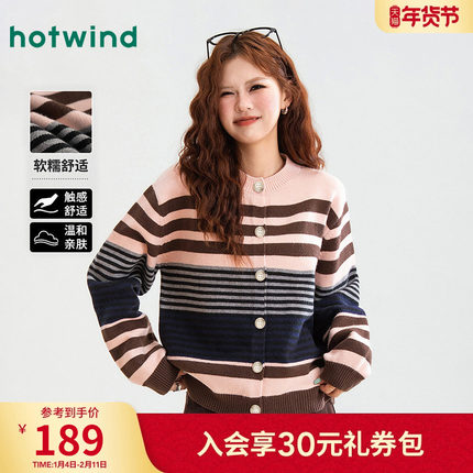热风女士美拉德复古学院风秋冬女款针织开衫时尚甜酷条纹休闲毛衣