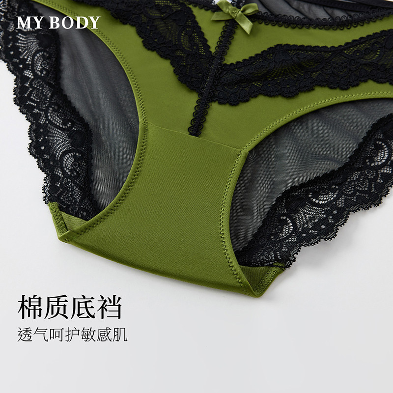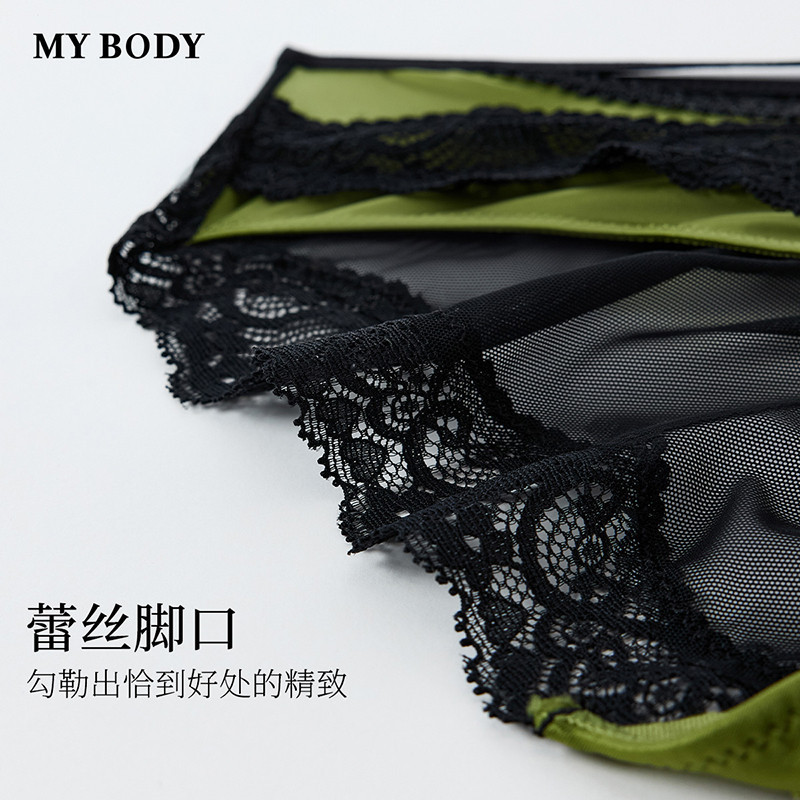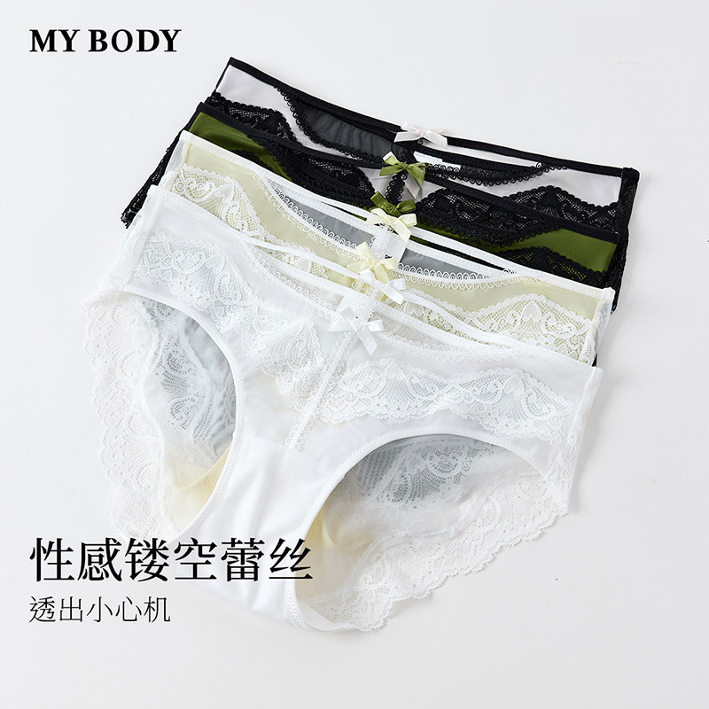 3件159|商场同款MYBODY新款缎面性感蕾丝网纱镂空纯棉底裆内裤女