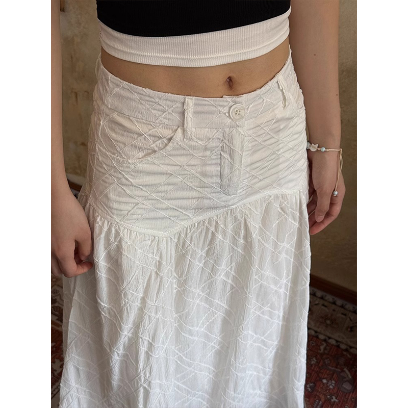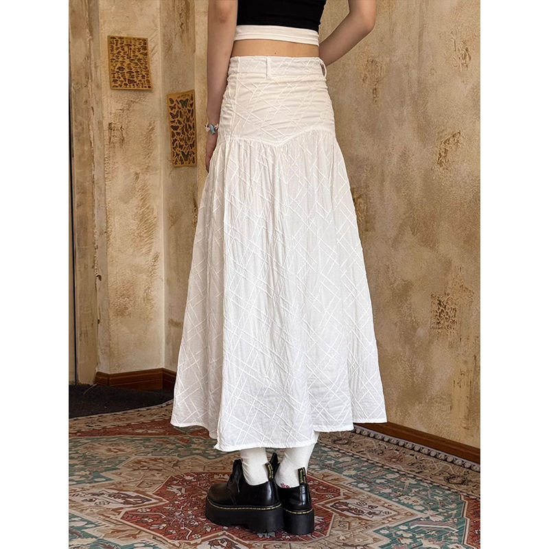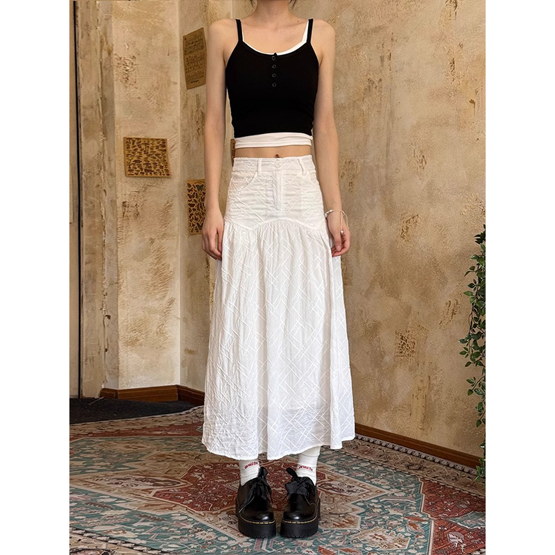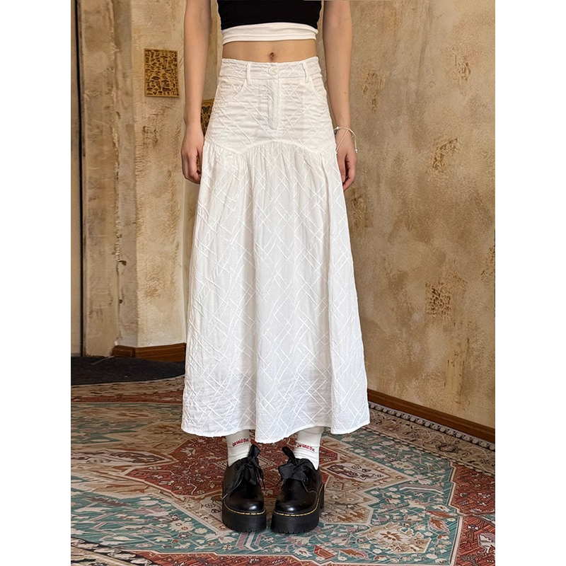 小众立体格纹剪花白色半身裙女夏季设计感百搭高腰a字裙显瘦长裙