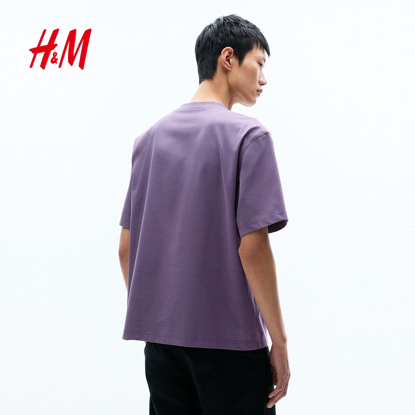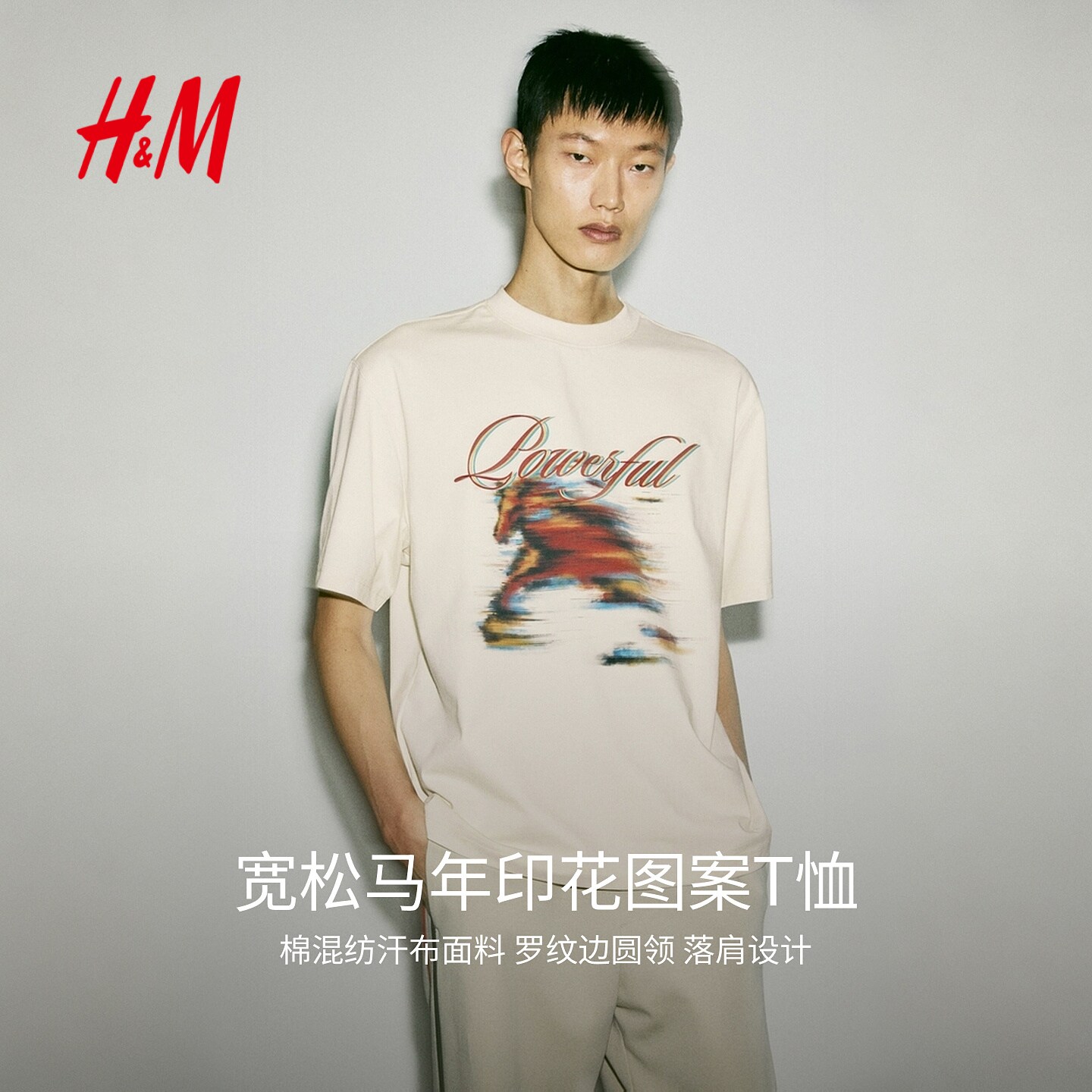 HM男装T恤2026春季新款宽松户外出游印花圆领短袖休闲上衣1307990