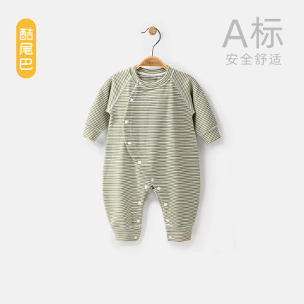 酷尾巴新生儿衣服春秋款德绒加厚哈衣室内保暖单穿宝宝连体衣婴儿