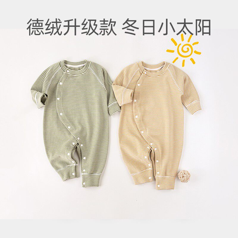 酷尾巴斜襟按扣德绒秋冬保暖哈衣