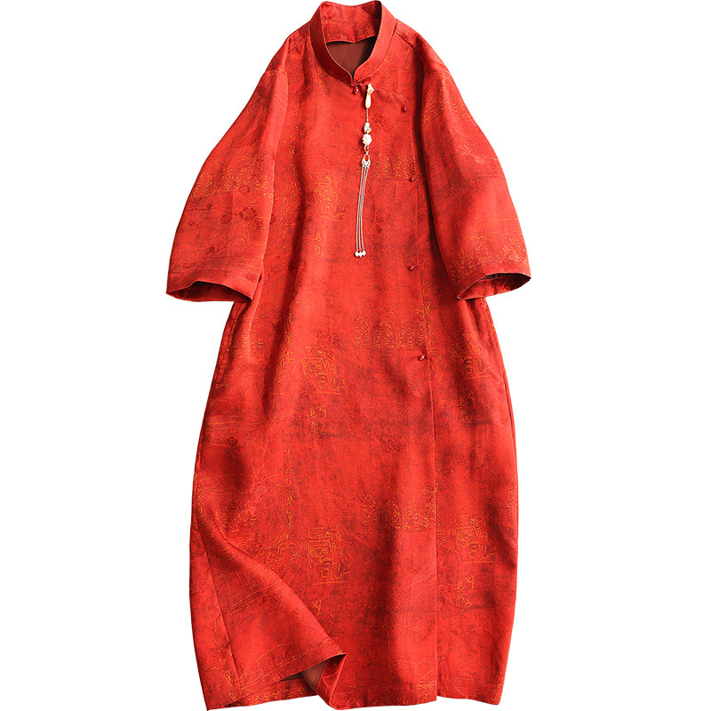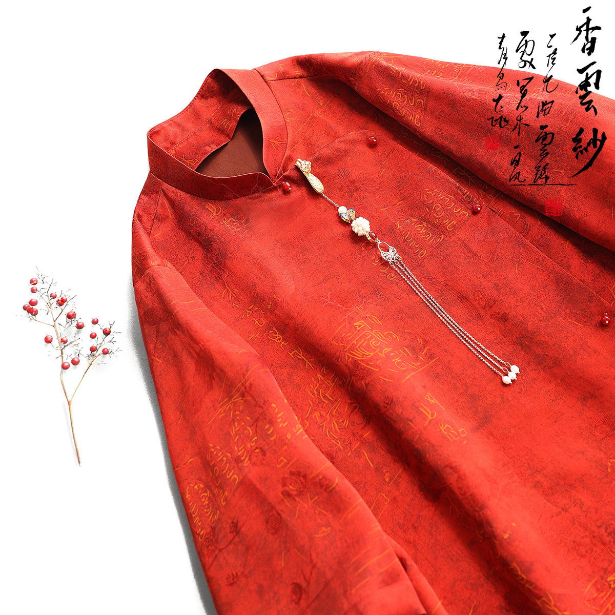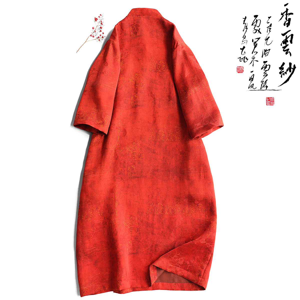 云澍原创花罗香云纱新中式立领改良旗袍喜妈妈婚宴真丝连衣裙夏季