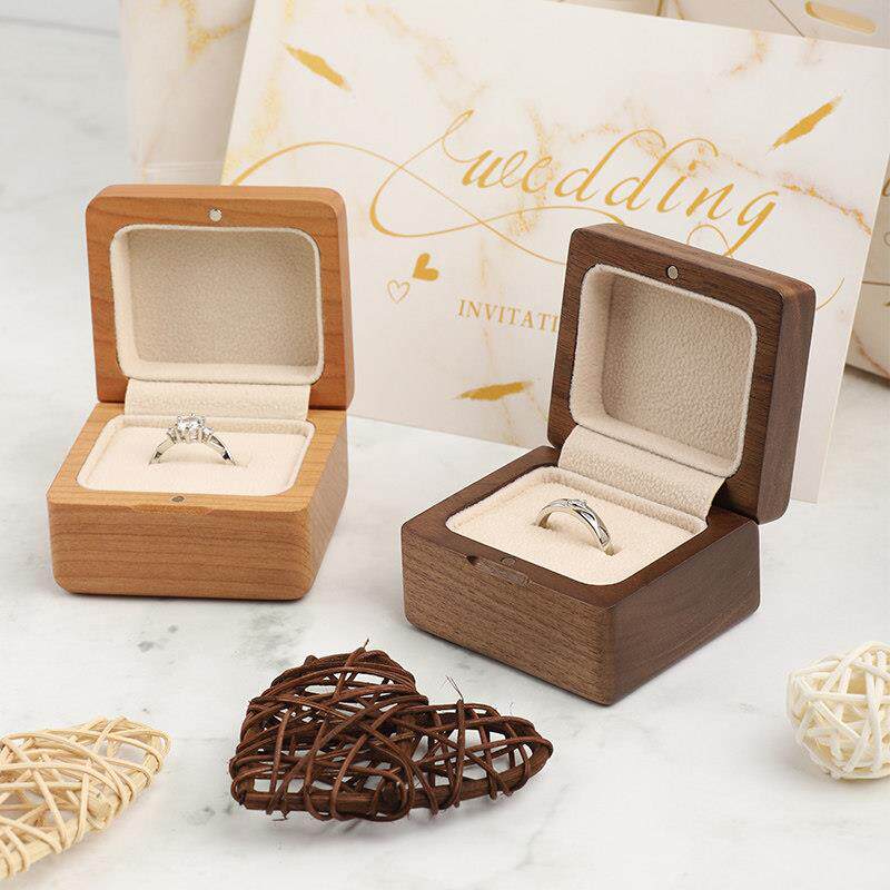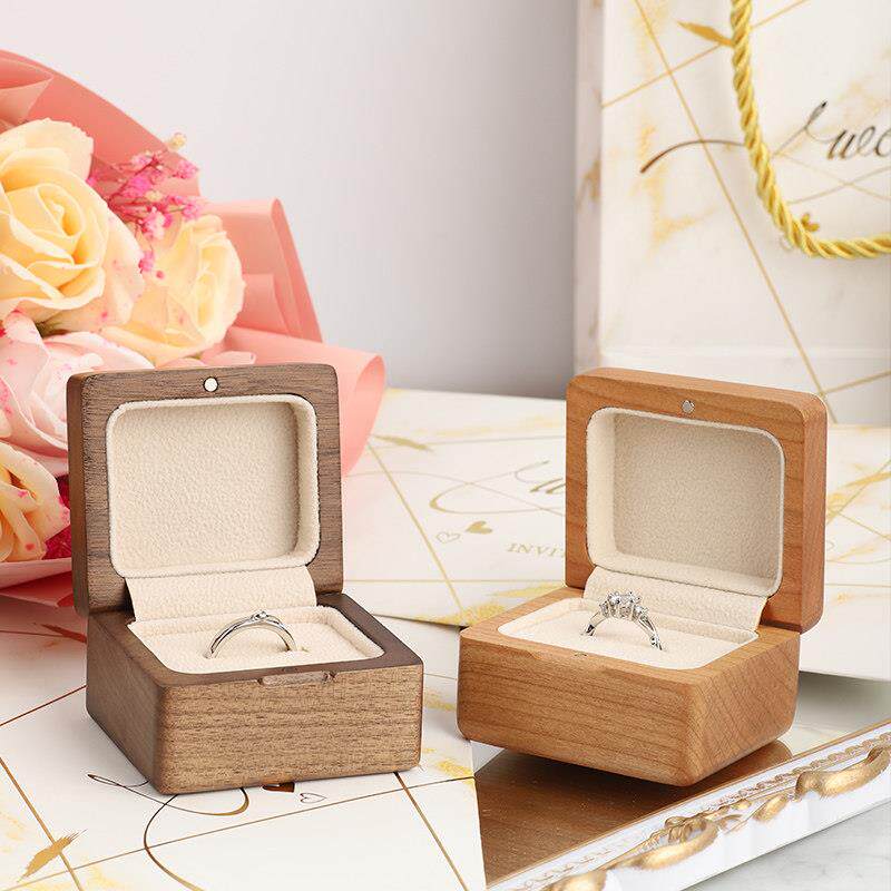 高档实木戒指盒结婚求婚钻戒盒婚礼仪式对戒单戒戒指盒子定制刻字