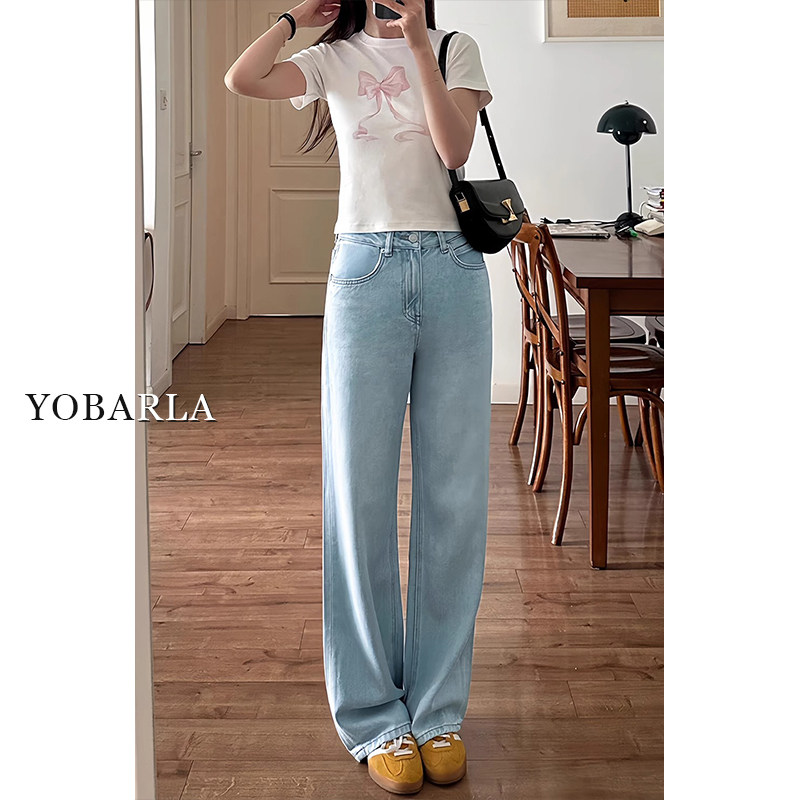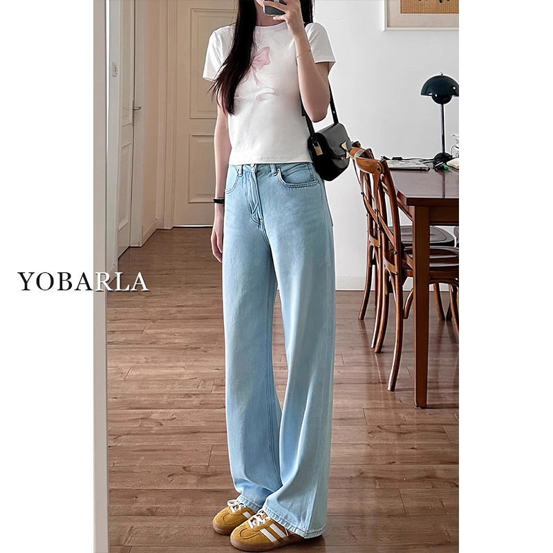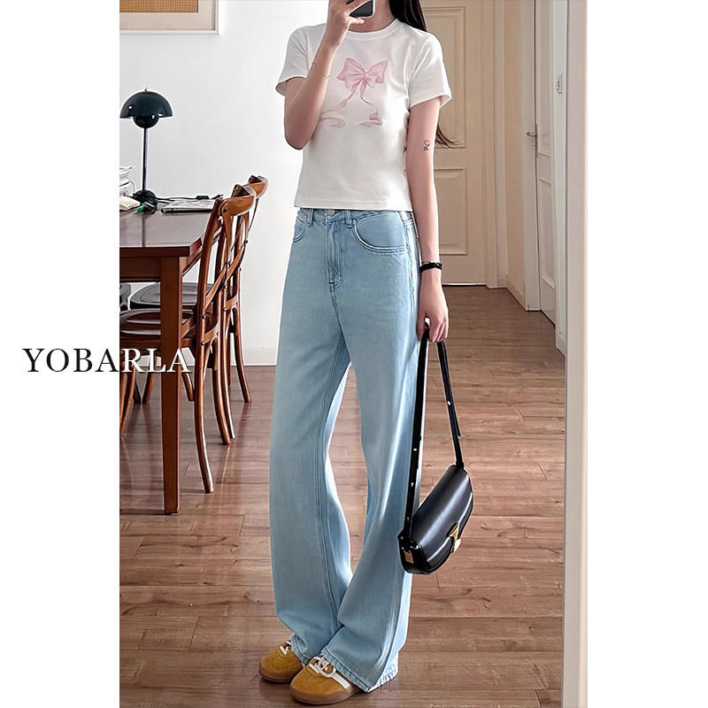天丝直筒牛仔裤女夏季薄款大码胖mm梨形身材宽松显瘦冰丝阔腿裤子