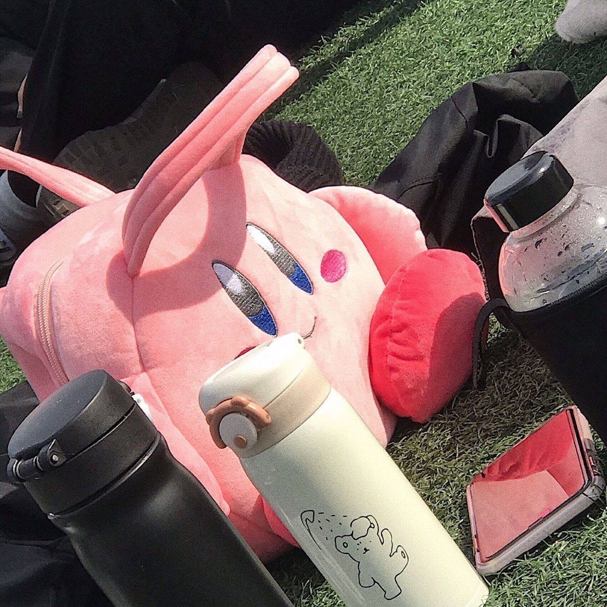 日系星之卡比可爱粉色收纳包手提包化妆包女生便当袋笔袋斜挎包