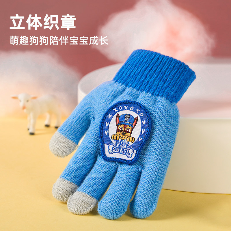 汪汪队儿童手套冬季男童五指手套秋冬保暖男孩卡通毛线手套卡通