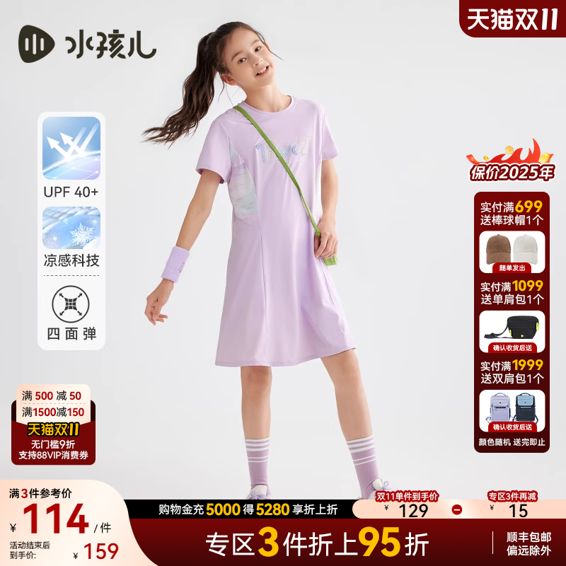 水孩儿童装女童连衣裙夏装新品凉感防晒网球裙中大童短袖裙子