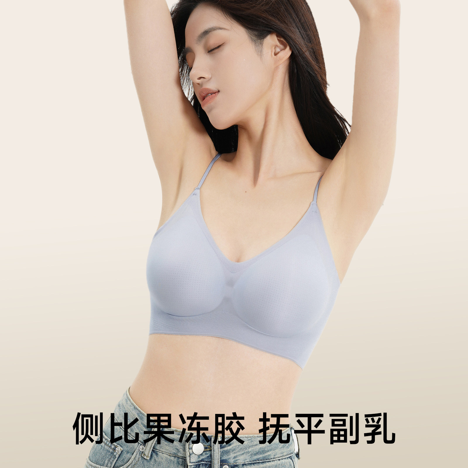 草本初色内衣女细肩带无痕夏季薄款大胸显小胸聚拢凉感无钢圈文胸