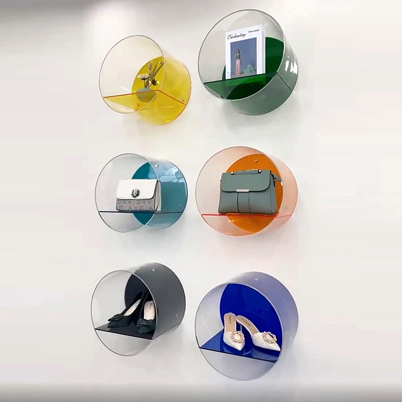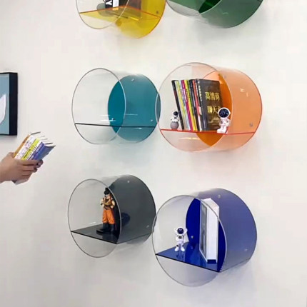 亚克力透明书架圆形壁挂上墙创意手办公仔防尘置物收纳架鞋包陈列