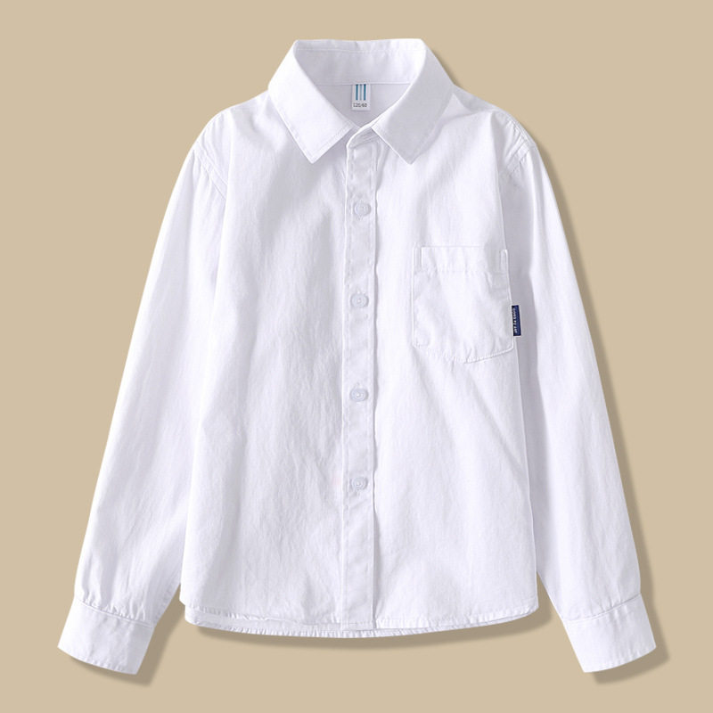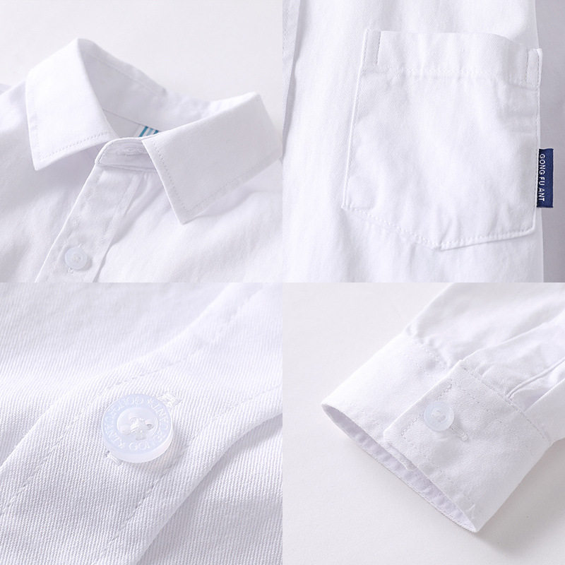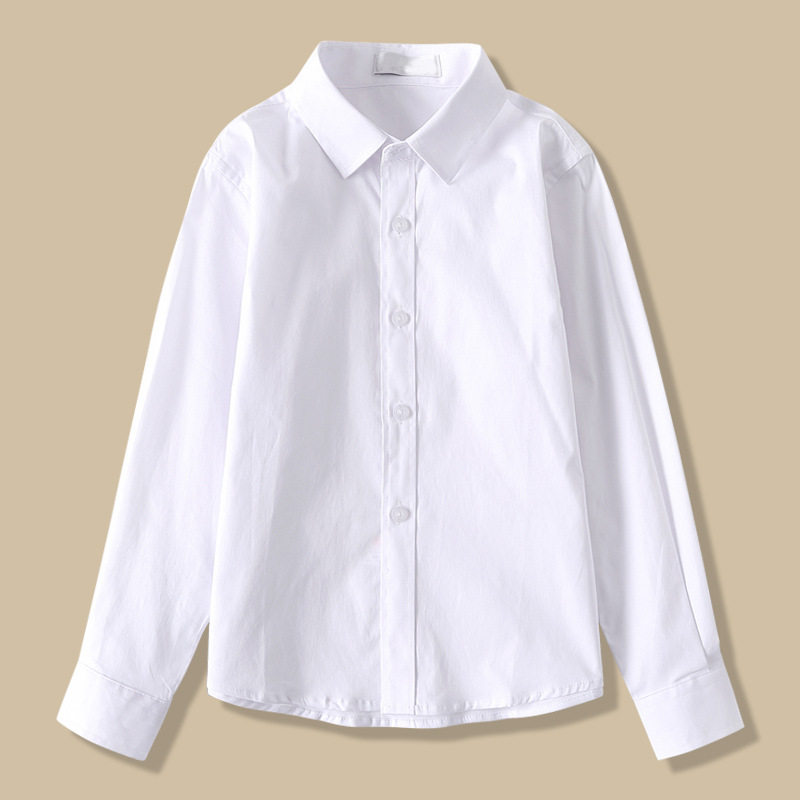 巴拉可儿纯棉白色衬衫长袖春秋小学生校服男女童免烫演出主持礼服