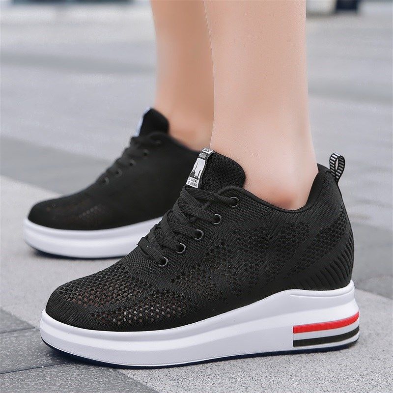 小个子内增高女鞋小黑鞋隐形增高7CM运动休闲鞋新款百.搭女士单鞋
