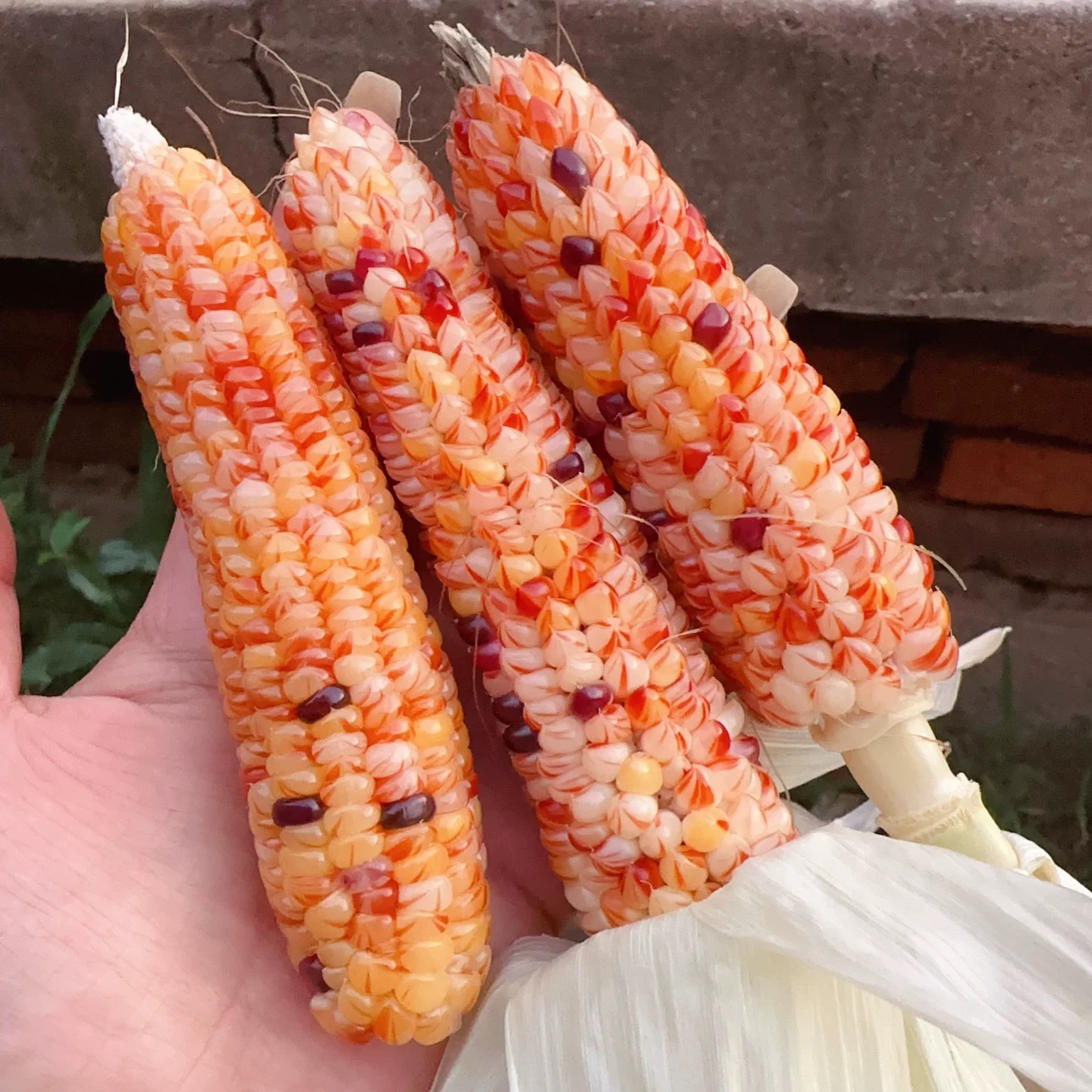 天然彩色宝石血丝玉米手把件文玩玉米摆件小挂饰盘珠包浆玉化礼物