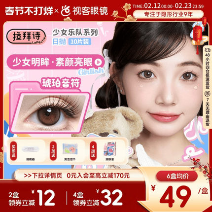 拉拜诗少女乐队日抛美瞳10片装隐形眼镜原生初恋柔雾小黑环